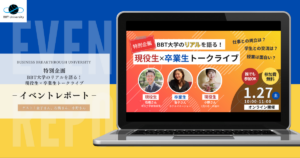 働きながらビジネスを学べるビジネス・ブレークスルー大学(以下BBT大学)は、2023年9月26日、ITソリューション学科(現:デジタルビジネスデザイン学科)を卒業した小木みゆきさんをゲストに迎えキャリア戦略セミナーを開催しました。今回はそのイベントレポートをお届けします。