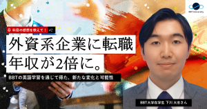 それから、コンサルティングの仕事にはITと英語が関わっていて、BBT大学でITと英語と経営を学んだことが、バランスよく活かせているということもあります。