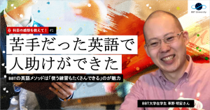 鬼本:実は、初めはBBT大学のオープンカレッジ「PEGL(ペグル)」に行きついたんです。英語とビジネスを同時に学べるというコンセプトに惹かれて。