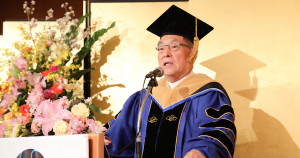 大前学長からは「BBTの知のネットワークは世界各国にわたり、アルムナイの学生同士が繋がっています。卒業後もぜひ学友との交流を深めていただきたい。長いものに巻かれるという考えではなく、常に自分自身で考え、答えを導きながらこれからも己の道を突き進んでいって欲しい」と述べ、宇田副学長からは「BBT大学を卒業しても、必ず次の新しいステップが訪れます。今日より明日を良いものにする。このことを常に考え、何事にも志高く挑戦し、前進していっていただきたいと思っています。皆さんの活躍を大いに期待しています」とエールを贈りました。